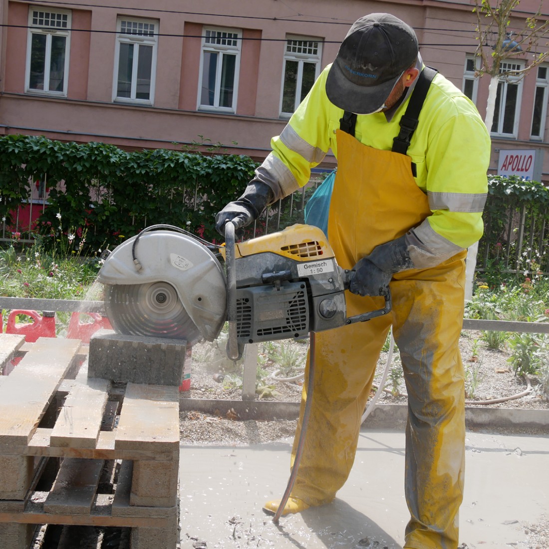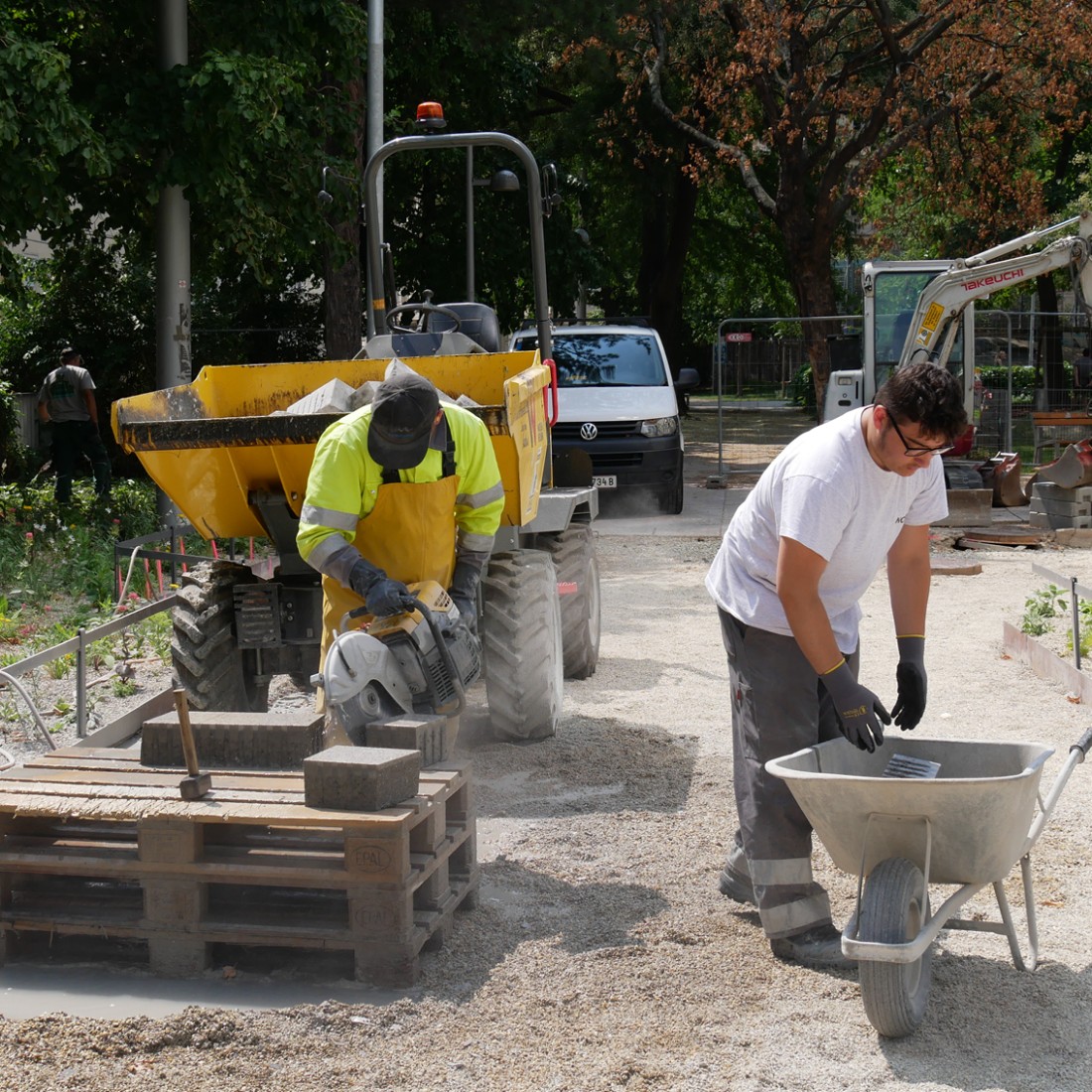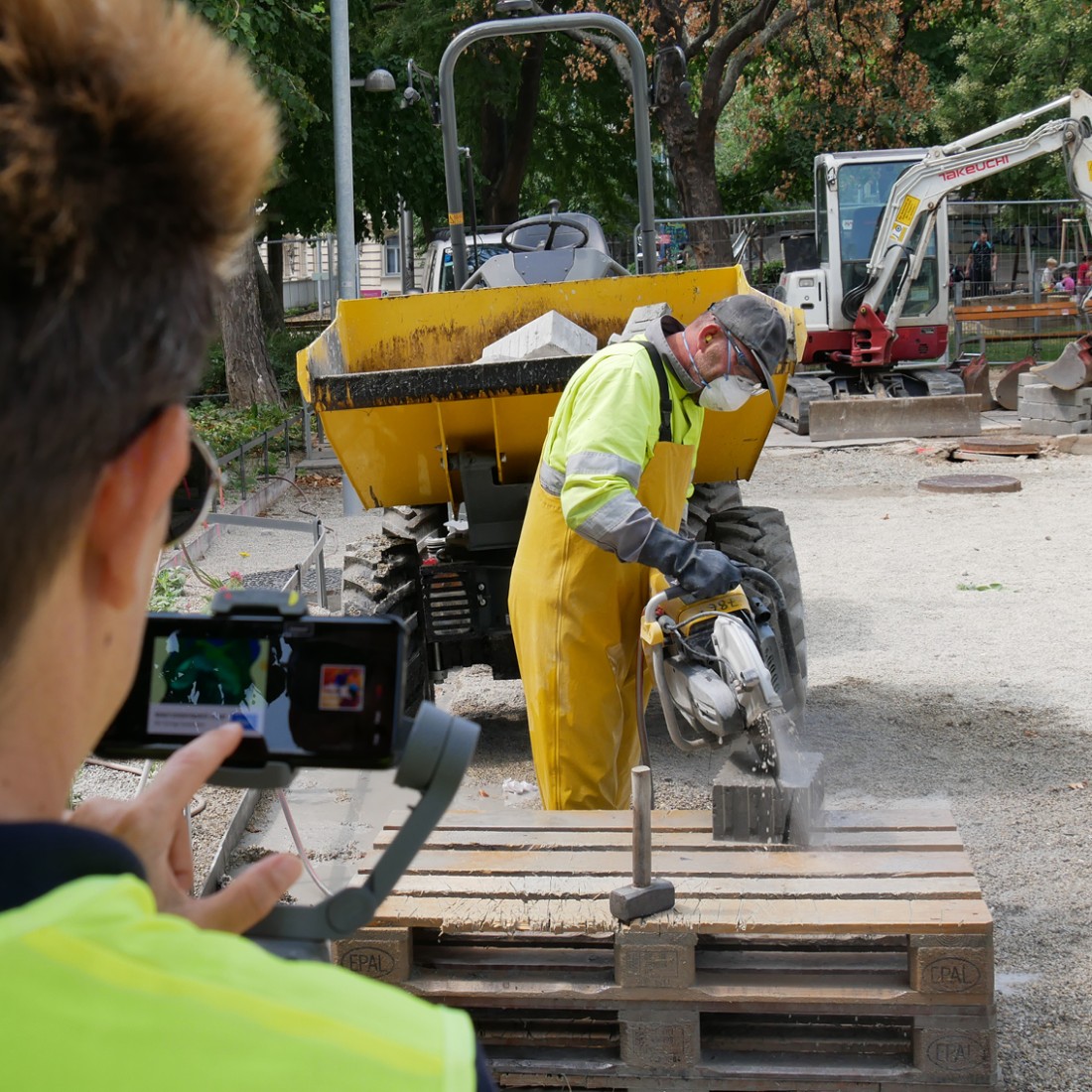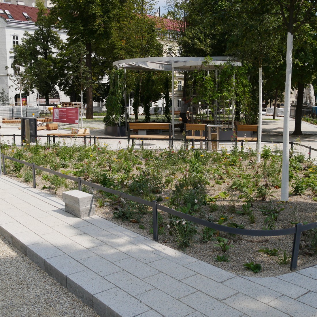 Hier im Esterházypark vor dem Haus des Meeres soll im Herbst 2020 Wiens erster Cooling Park eröffnet werden. Die Firma Nowak hat hier schon sehr tolle Arbeit geleistet. Sie wurde mit der Neugestaltung einer hellen Pflasterfläche im gesamten Parkgelände beauftragt. Das neue Bauzauntransparent der Firma Nowak wird hier auch ganz stolz von unserem Kollegen präsentiert. Sehr gelungen!