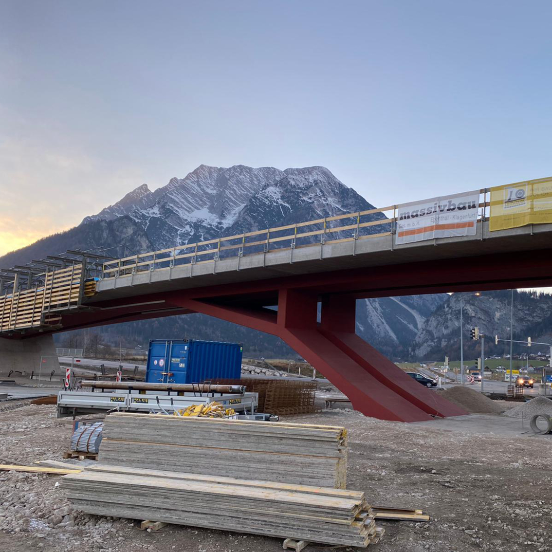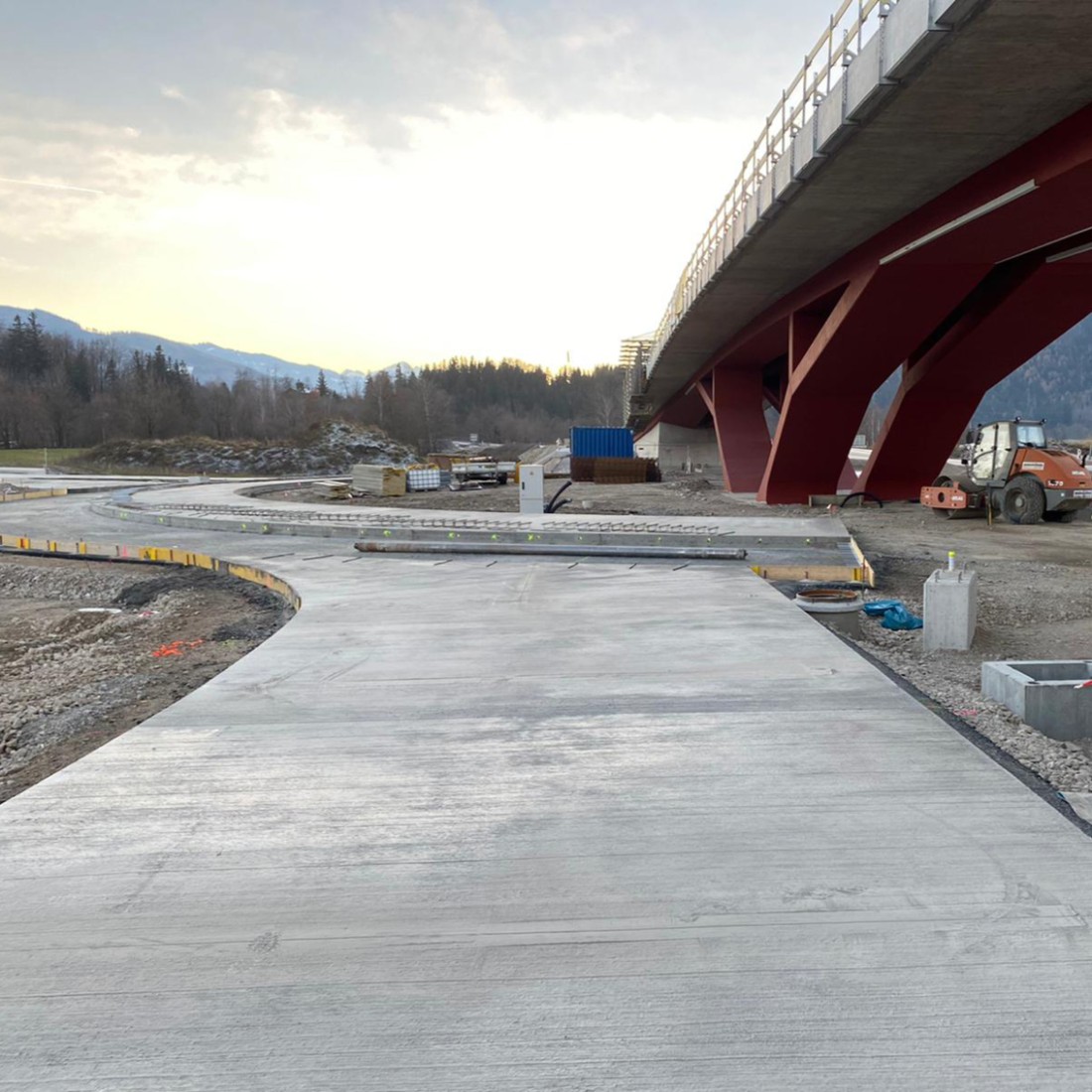 Wie schon berichtet, geht es beim Knoten Trautenfels gut voran! Der erste Teil der Asphaltierungs- und Betonarbeiten wurde nun von uns erfolgreich abgeschlossen, wie man hier gut sehen kann.