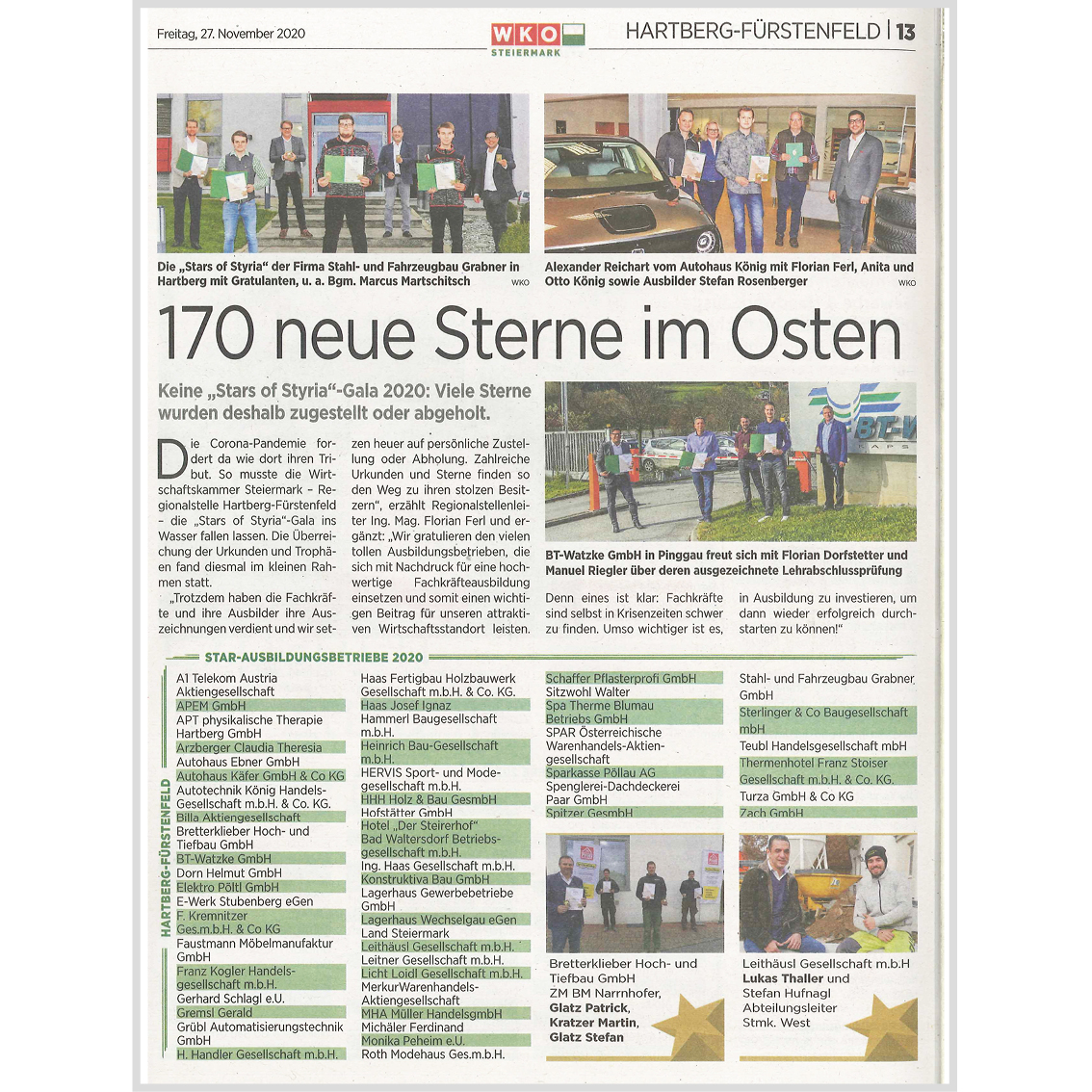 Die Firma Leithäusl ist auch als solcher Ausbildungsbetrieb aufgelistet und deswegen hat unser Kollege Lukas Thaller (Stmk./Filiale St. Johann in der Haide) heuer den "Star of Styria" bekommen. Wir gratulieren ihm an dieser Stelle recht herzlich!