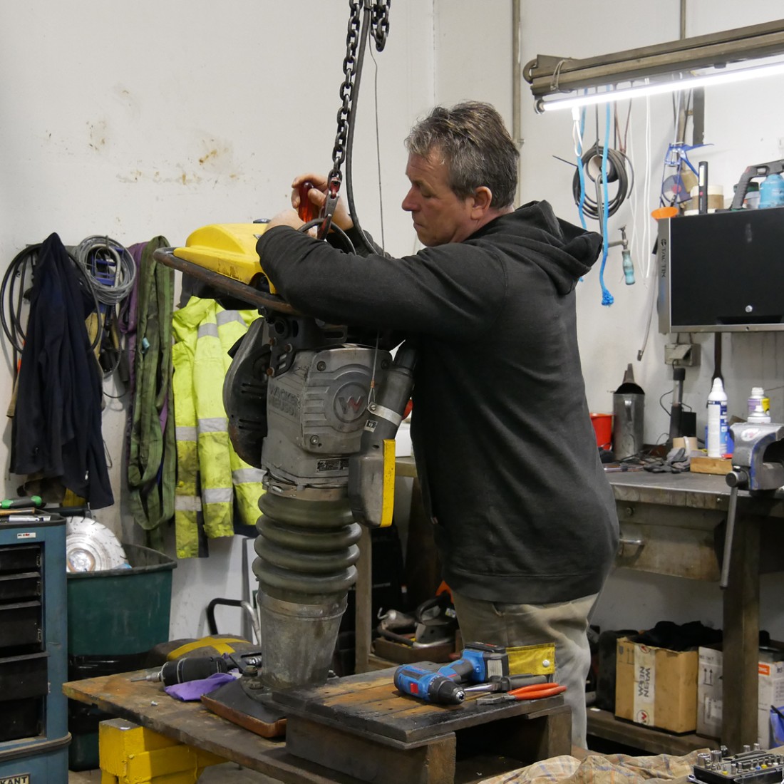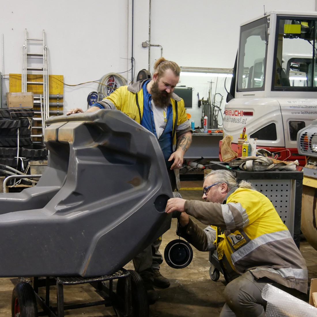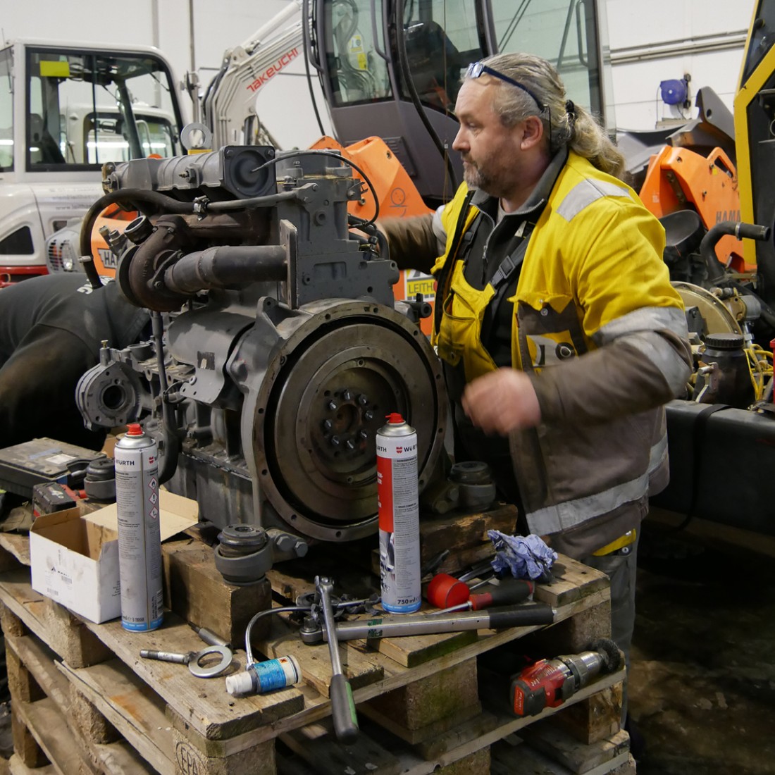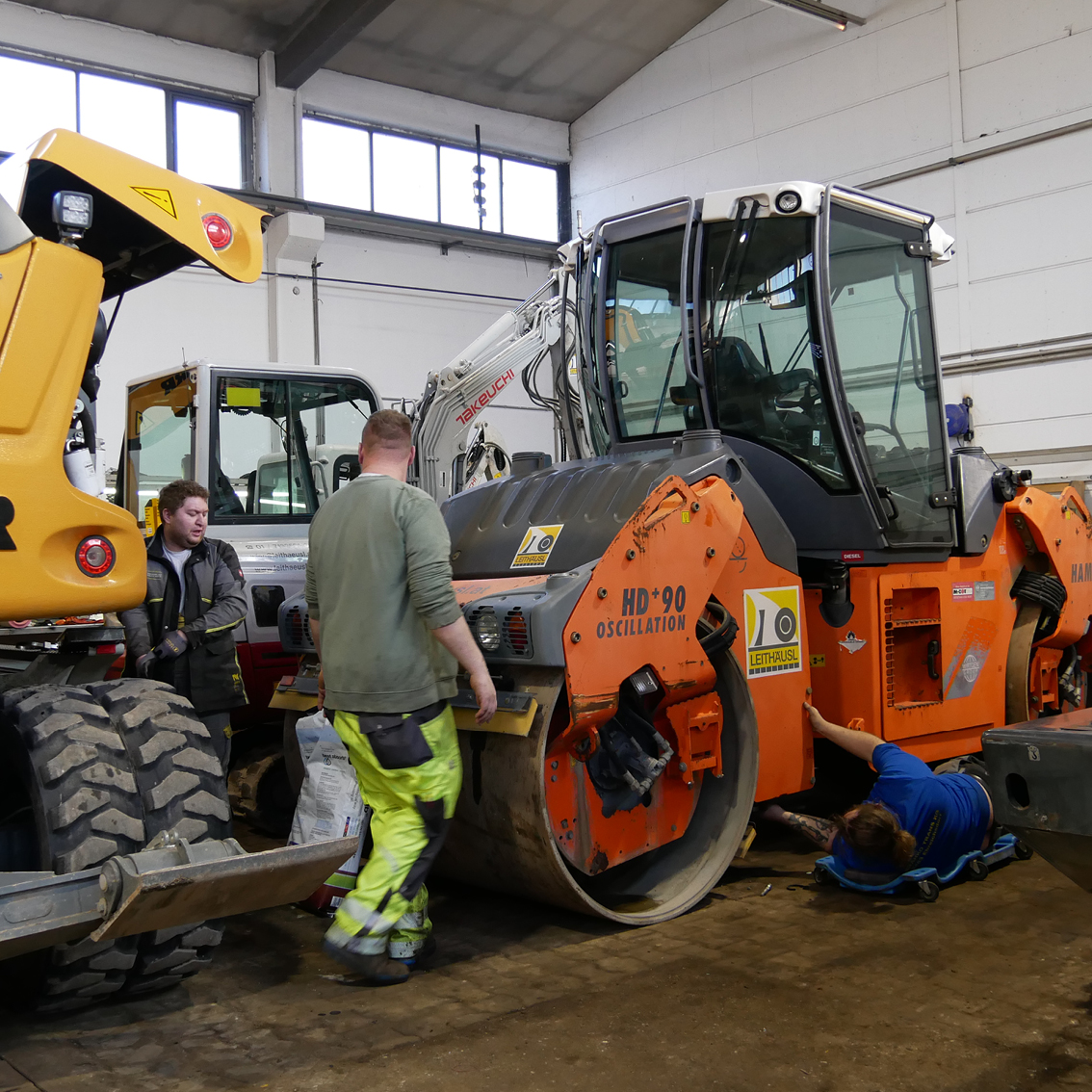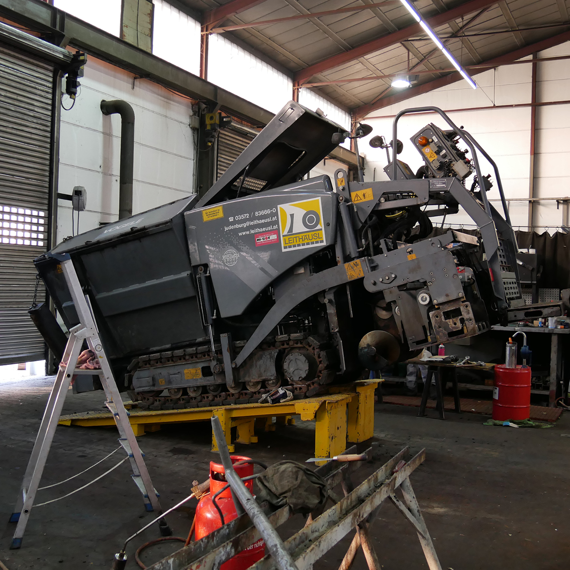 Unsere Kollegen am Bauhof arbeiten auf Hochtouren. So wie jedes Jahr um diese Zeit werden hier all unsere Geräte, Fahrzeuge und Maschinen gereinigt, gewartet und repariert. Darunter befinden sich unter anderem Fertiger, Bagger, Dumper, Verdichtungsgeräte, Walzen, Kompressoren, Vibrationsplatten und Fugenschneider. Wenn alles ordnungsgemäß geprüft wurde und einwandfrei funktioniert, können die Maschinen wieder an ihre Einsatzorte geliefert werden. In unserem Fall wären das unsere Baubereiche in W, NÖ, Stmk, Bgld und OÖ. Es werden jährlich über 2.500 Reparaturaufträge erledigt, das entspricht ungefähr 20.200 Arbeitsstunden für unsere Kollegen.