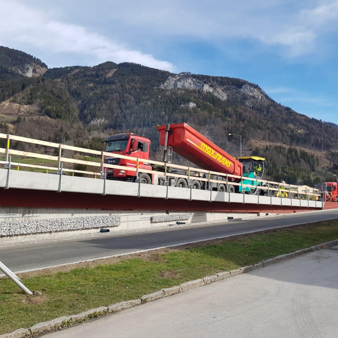 Letztes Jahr haben wir bereits über die Arbeiten beim Knoten Trautenfels berichtet. Nun wurde das Projekt fortgesetzt. Derzeit wird die Asphaltierung der B320 fortgesetzt und schon bald wird es möglich sein, mit dem Auto über die neu hergestellte Brücke zu fahren.