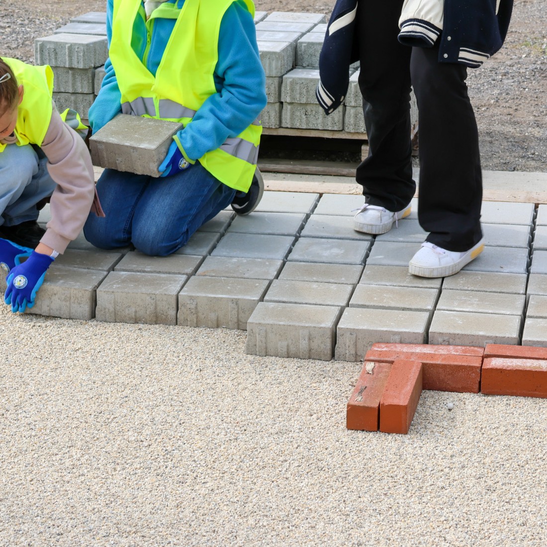 30 begeisterte Mädchen haben heute bei uns die Welt des Tiefbaus erkundet – vom Pflastern bis zum Probesitzen auf beeindruckenden Baumaschinen.